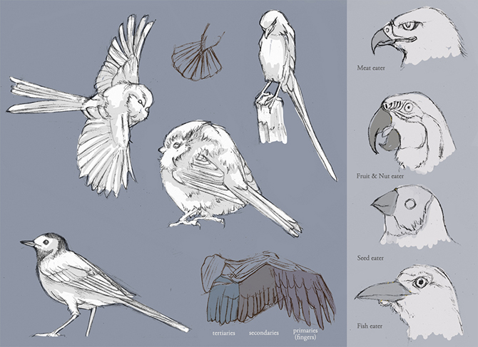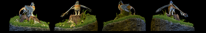 For my final project I chose to design, model and rig a Griffin character to be used in games or film. My final design was based on a Kestrel instead of the common eagle. The Griffin was modelled in ZBrush, then unwrapped in maya before being sent to Mudbox for texturing. The feathers, ferns and leaves were made in Maya using simple image planes and opacity maps.