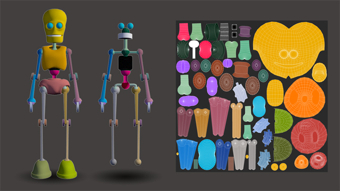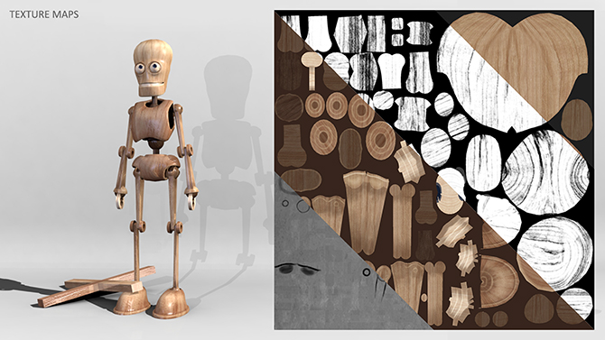 I used the puppet model for AR. I posed him in Maya then exported the files and textures in DAE format..