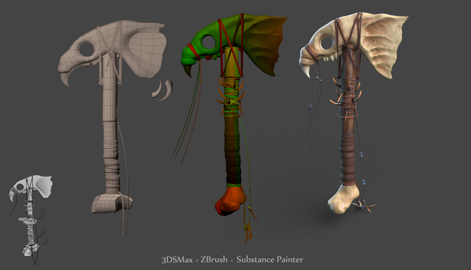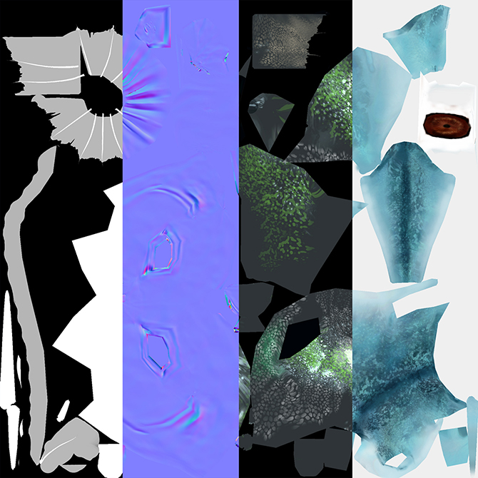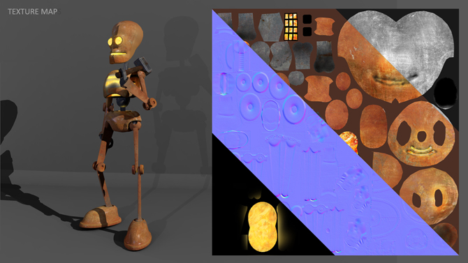 • Export back into the 3d package as a low level mesh using a Normal texture to mimic a higher polygon model
