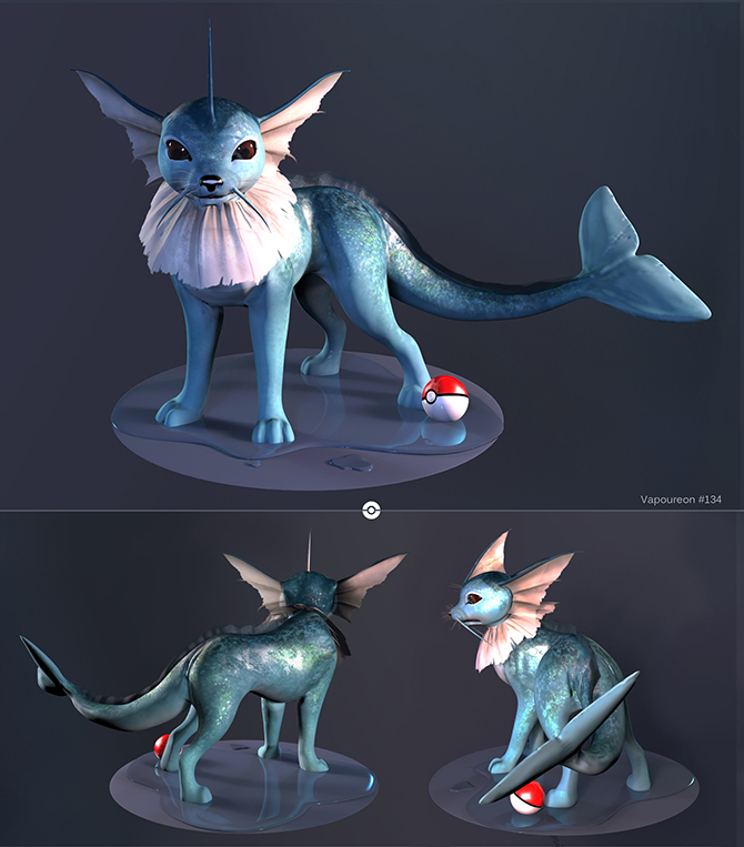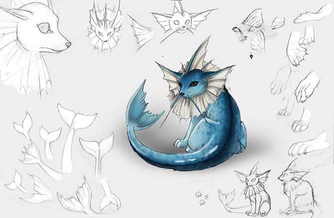 I chose the Pokemon brief, and redesigned them to be as realistic as possible. I chose Vapoureon(a water fox), and Torterra (a forest turtle) as these presented the most interesting textures to work with.