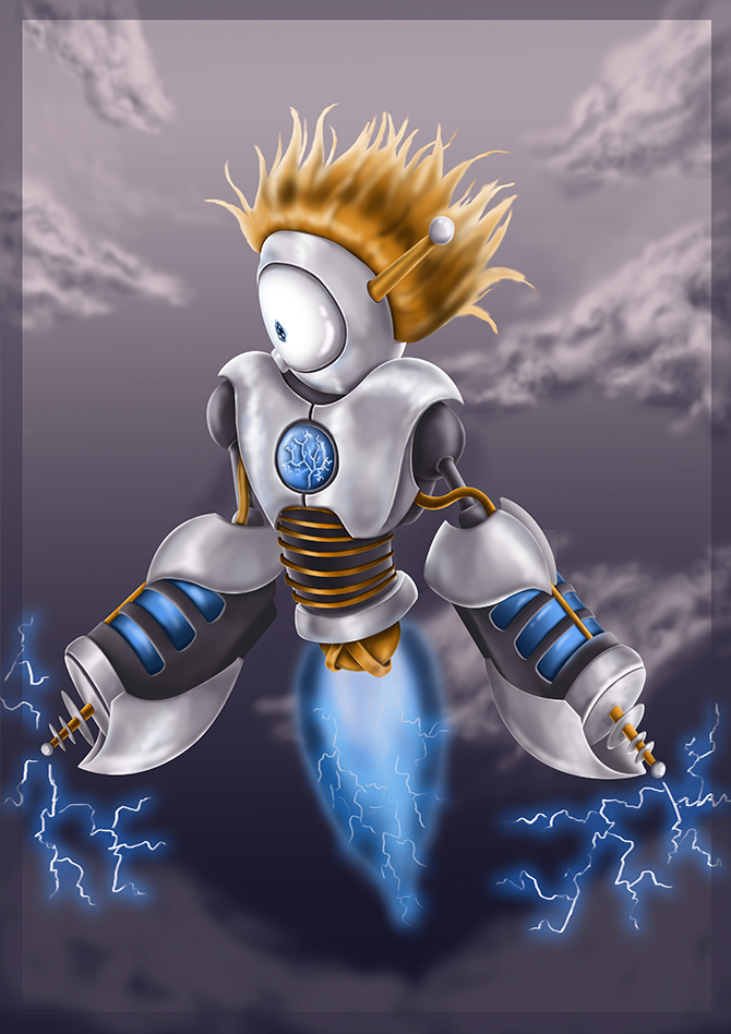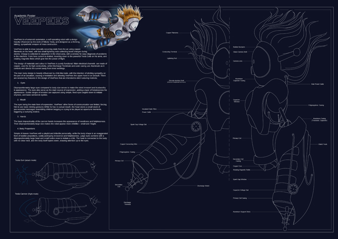 I decided to model a previous character I designed. The robot Veepees was based on a childrens drawing - he is powered by Tesla technology with Tesla cannons as arms.
