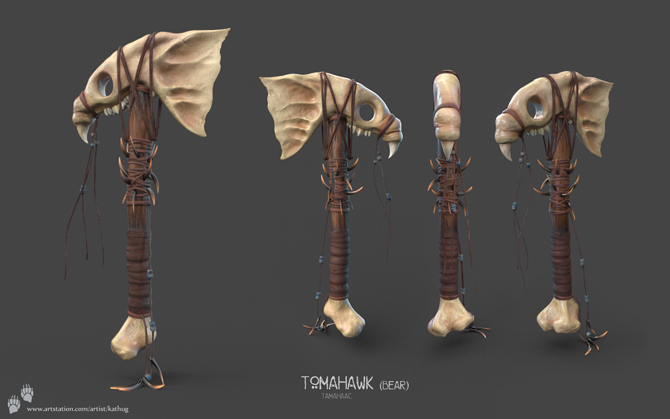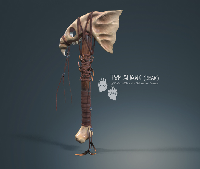I decided to make a Native American jawbone Tomahawk. I used the jawbone and claws from a bear, though in reality they were often made from Buffalo.