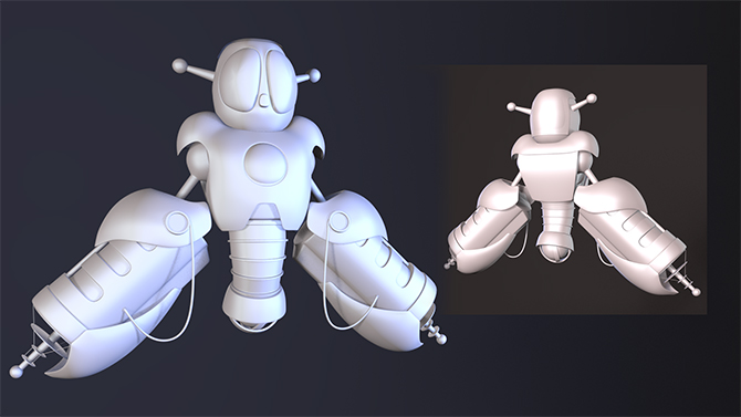 • Render 2 full HD beauty shots of the final textured robot