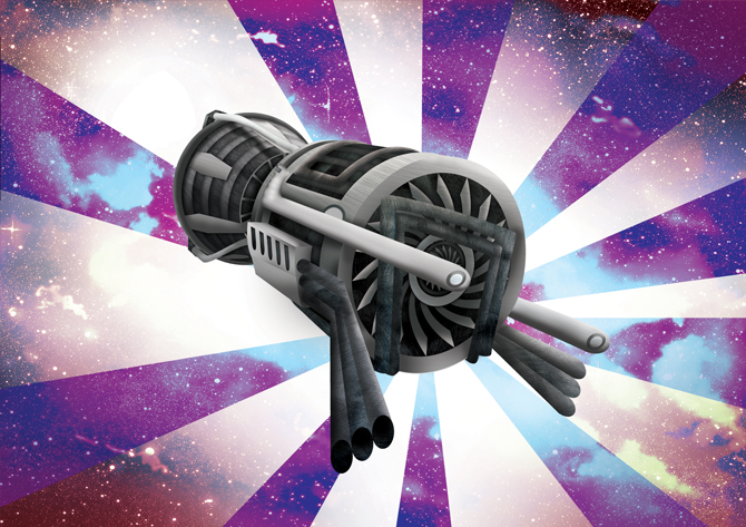 I decided to draw the futuristic gun based on a jet engine and the various parts in them.