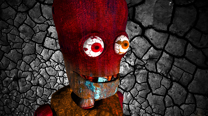 The Gorilla robot, my attempt at making as animal into a robot. Gorilla seemed like the logical animal at the time. The organic model was designed to be like a Tim Burton character.