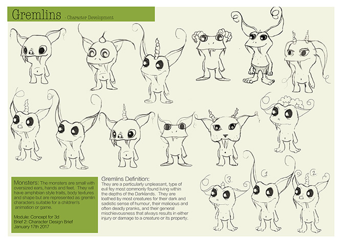 • The Monster Mash: Design a monster for use in special effects in a real world setting OR design 3 cartoon based monsters for use in a children's cartoon animation.