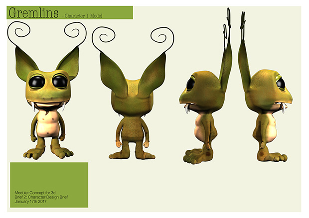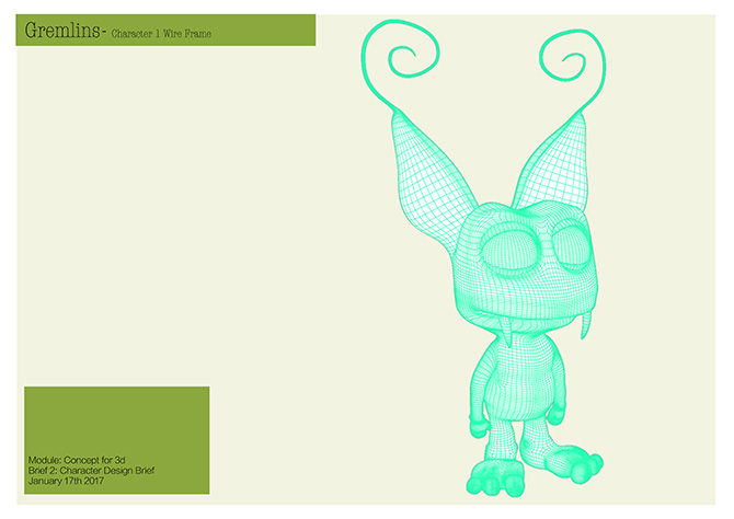 This brief brought my fully conceptualized character through to modelling. With this I enhanced my knowledge in UV unwrapping, texturing in Mudbox and modelling in Maya.