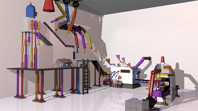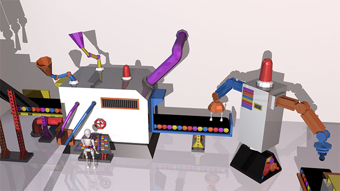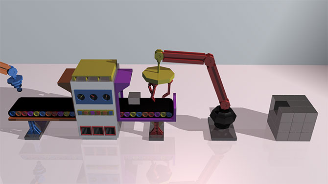 Over the 2 weeks of work placement, I worked on a project for Qubizm. The project was to create a background environment for an animation. I created an assembly line that creates the Isac9 boxes.