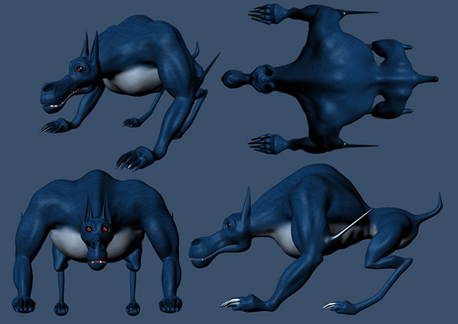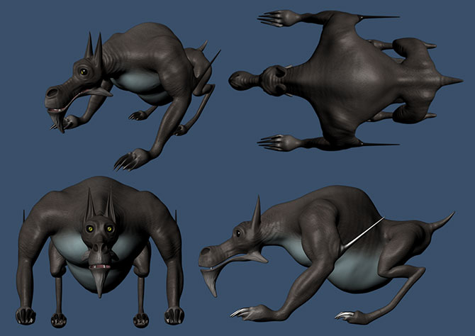 Concept, model and animate a pack of Garmr (Norse hellhounds) in their environment (cave/den) and set up to view in VR (Virtaul Reality). I learned a lot about creture and environmetal design from this project. I want to created a pack of Garmr, each having their own personality, reflected in apperence and movements.