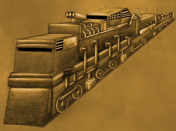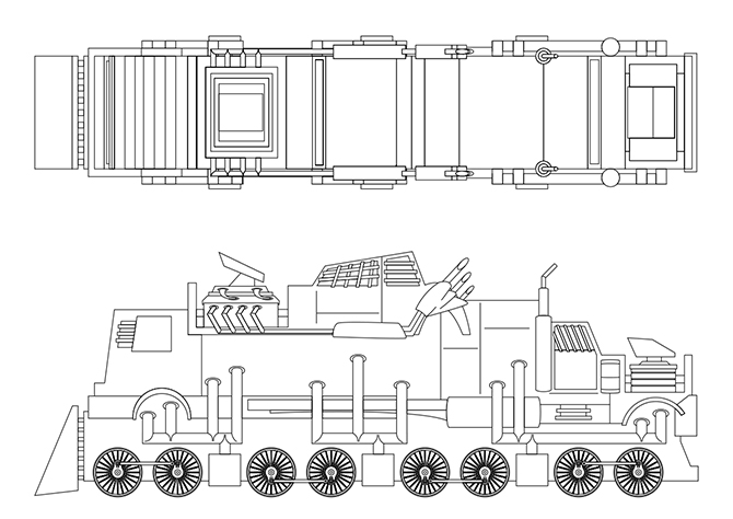 I chose to do a cartoon styled vehicle. I wanted to make a train out of other vehicles, the overall piece was inspired by the vehicles of Mad Max.