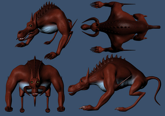 • Export back into the 3d package as a low level mesh using a Normal texture to mimic a higher polygon model